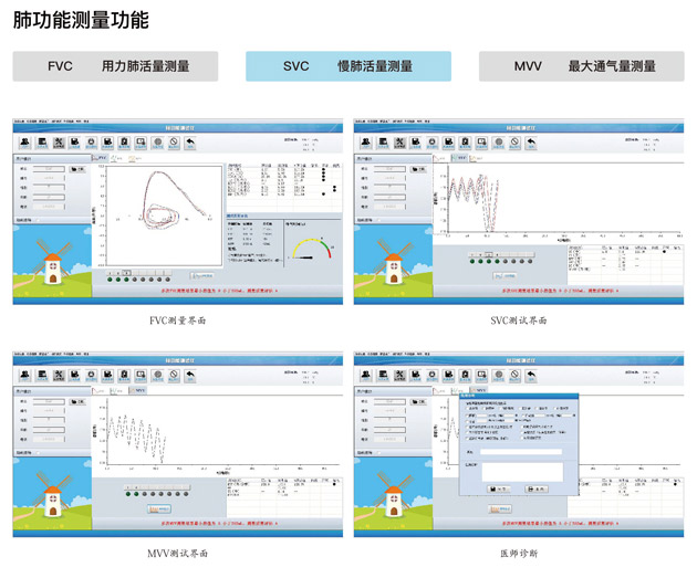 適用于呼吸內科、胸科、職業病防治機構、醫院體檢等,測量肺活量、用力肺活量、最大通氣量等肺功能通氣指標。