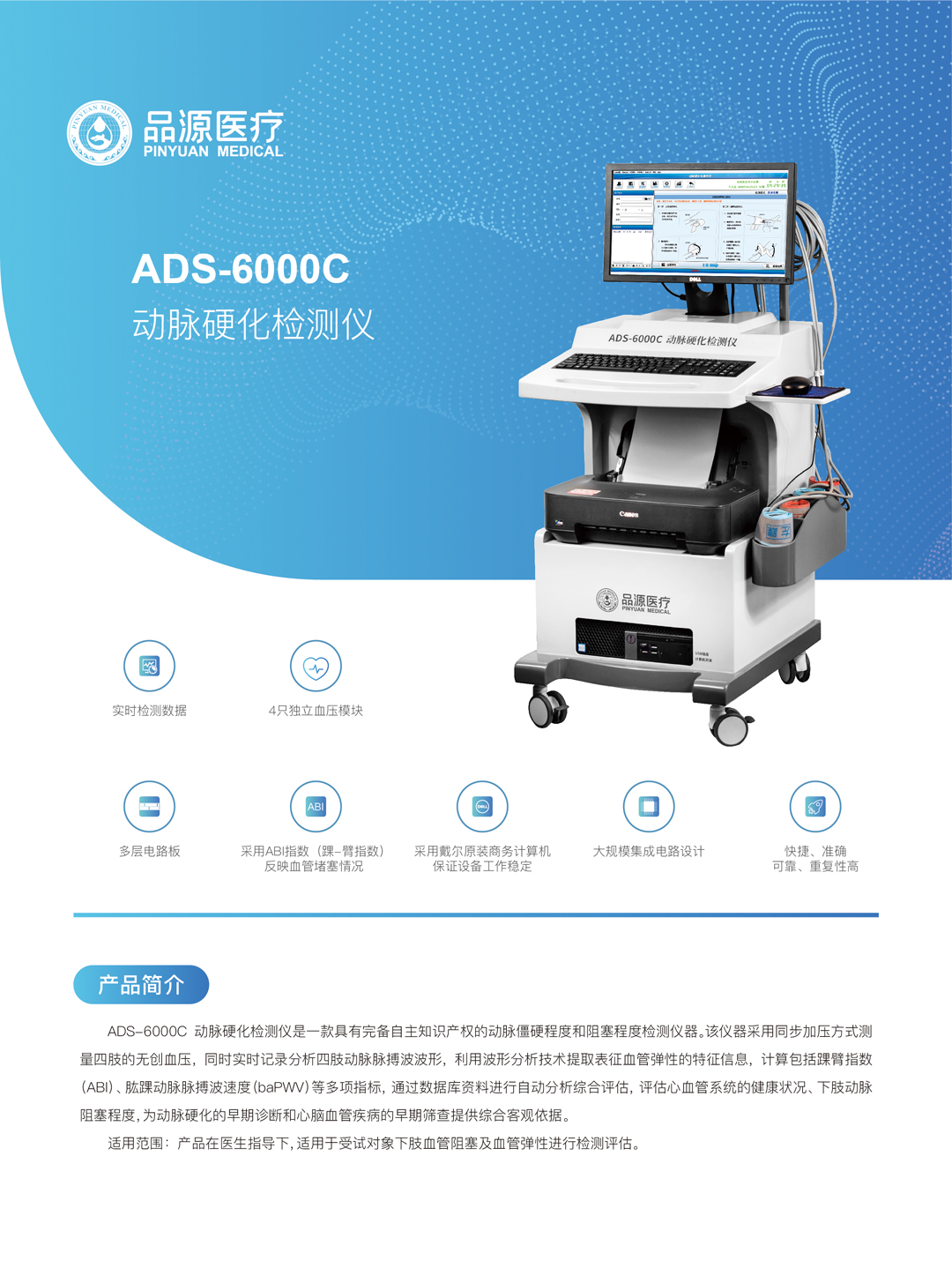 診斷疾病:動脈硬化檢測儀可以用于診斷多種與動脈硬化相關的疾病,如高血壓、冠心病、腦卒中、糖尿病、周圍動脈疾病等。這些疾病的共同特點是動脈壁的僵硬、失去彈性和增厚等改變,從而導致心臟供血不足和血管閉塞等嚴重后果。